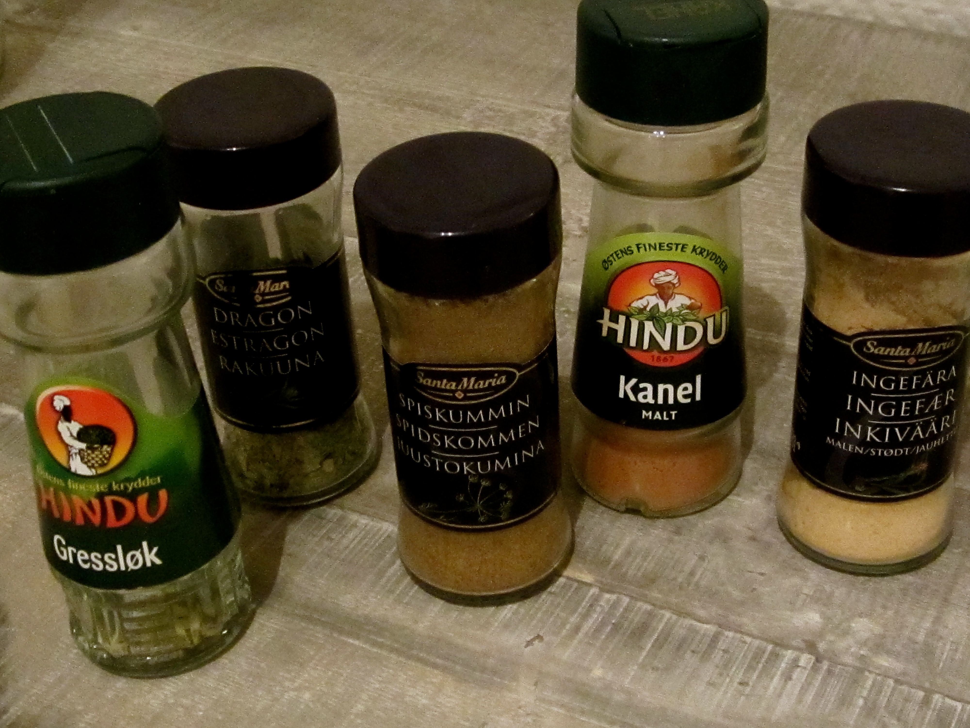 Perusing through the shelves, it suddenly dawned on me that not knowing Norwegian was going to be something of a handicap when it comes to cooking. Everything is packaged differently (i.e. mayonnaise and tomato sauce comes in tubes), so it took a while for me to recognize exactly what I’d inherited.