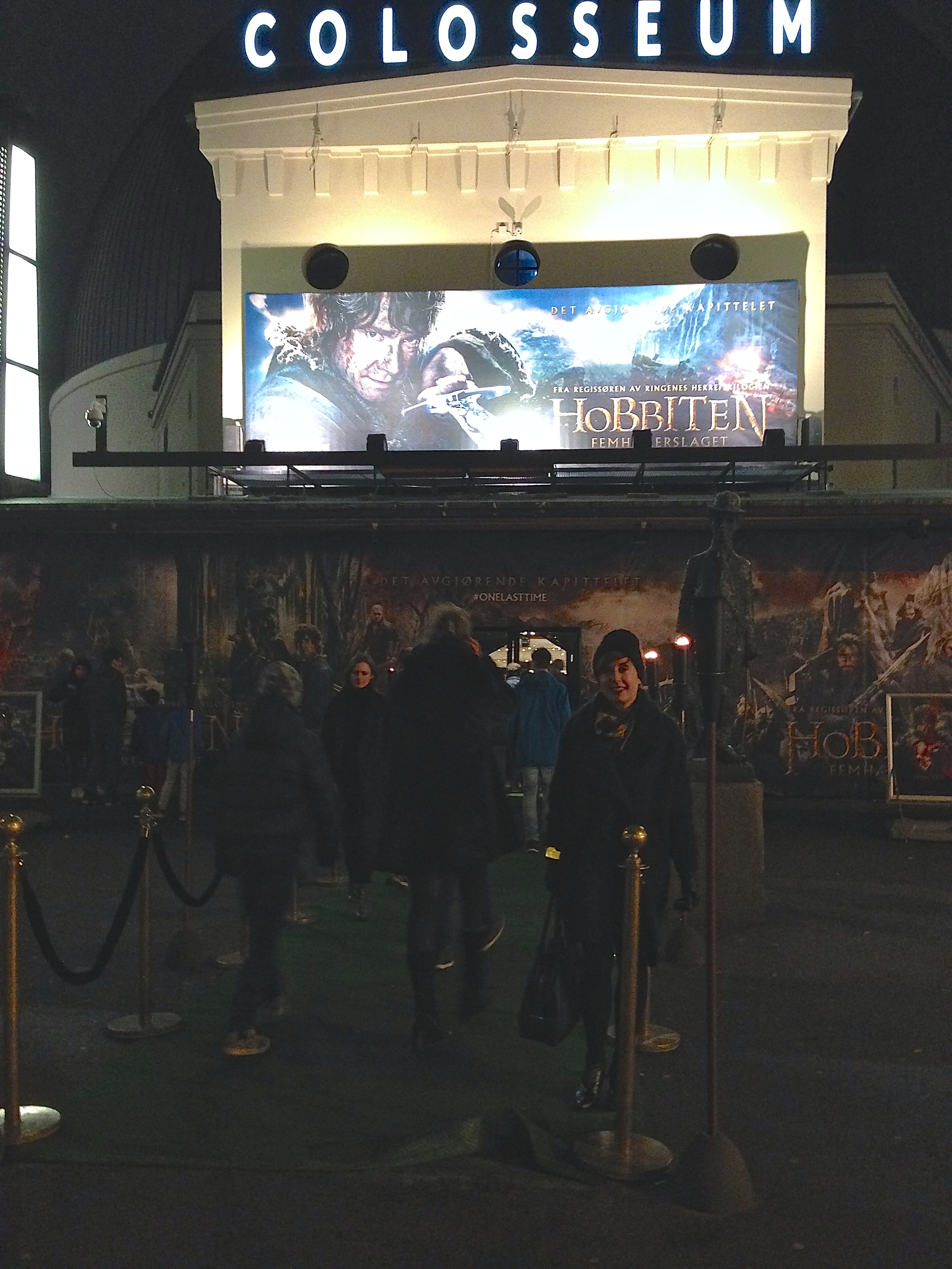 The second event that we had to rush to was, sadly, a showing of Hobbiten (The Hobbit). We would have skipped it except that we were meeting friends and had bought the $25/per person tickets a few days before, expecting that the party would be over by the evening. Oops.