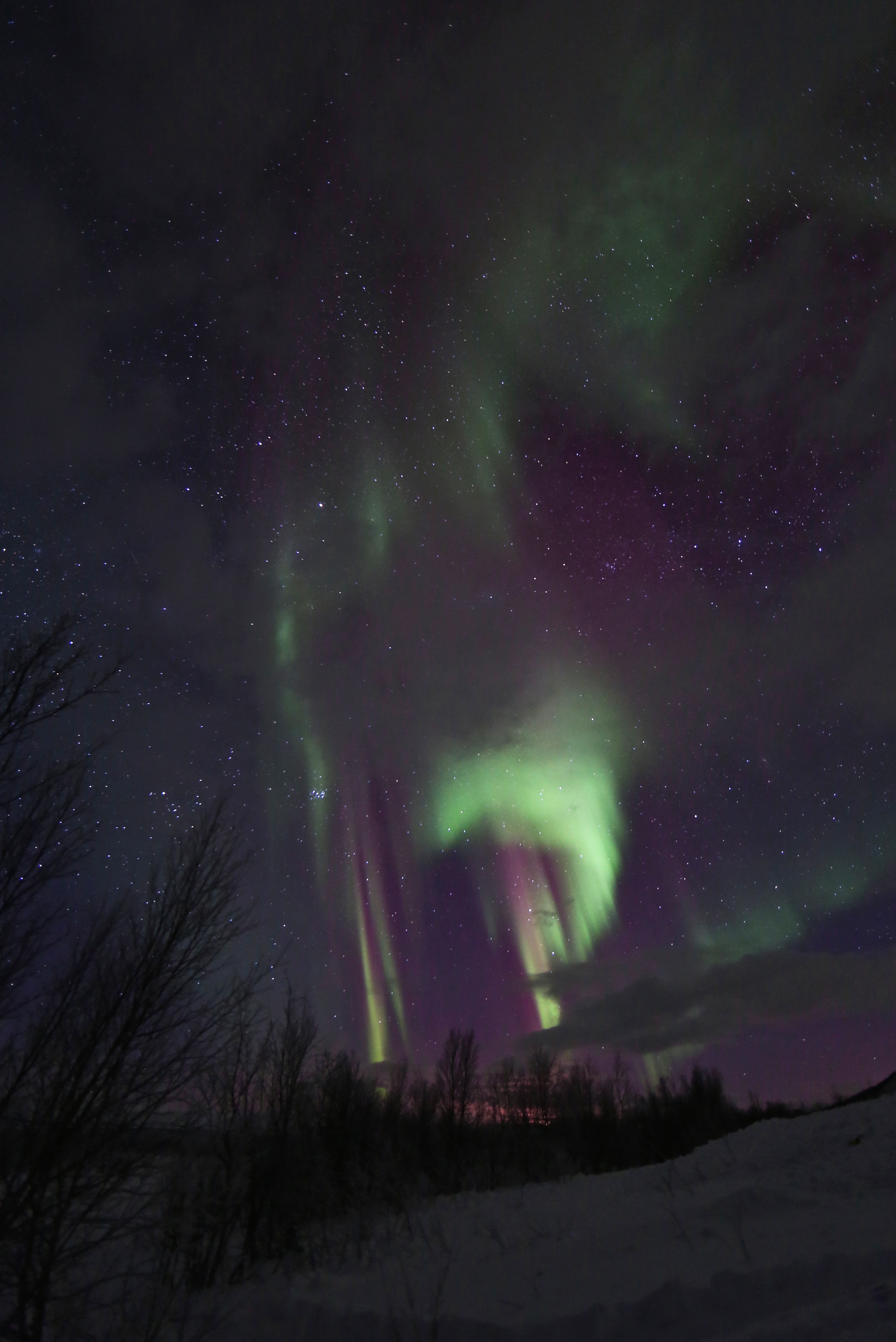 Fully equipped and bundled up in our snow gear, we waddled out into the night. At first glance, I couldn’t see why we’d stopped. The only light visible seem to be the moon seeping out from behind a cloud. As time passed, it focused more into a patchy halo.