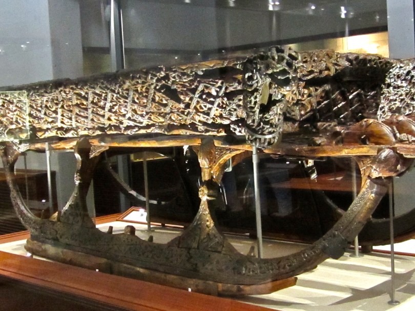 IMG_4064 June 30, 2015 4000 × 3000 Paris Avec Ma Petite Niece The largest sleigh in the Oseberg find once had bright red pigment painted in the recessed areas.