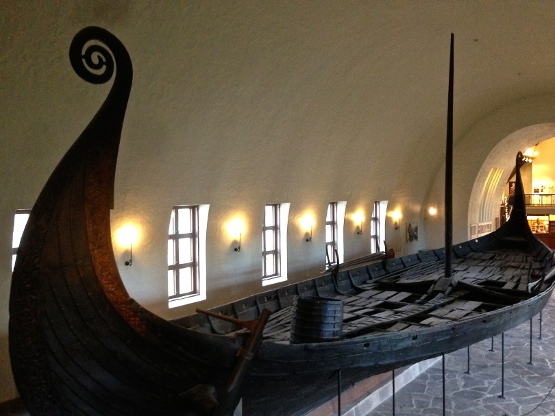 Looking down into the Oseberg, you can see the deck, gangway, rudder/tiller, a bailing bucket, and 15 pairs of oar holes. The mast itself held a single sail measuring 968 square feet (90 square meters), meaning that the boat could have reached speeds of more than ten knots. The ship itself measures a little over 70 feet (21.5 meters) in length and about 16 feet (five meters) in width.