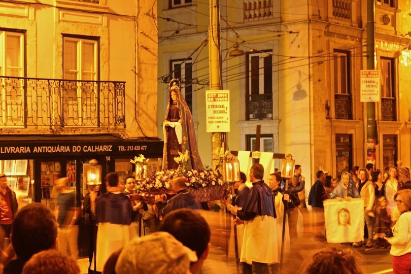 IMG_8837 July 27, 2015 3456 × 2304 Portugal: Easter in Lisbon Flower-bedecked figures of Christ, Mary, and various saints at the crucifixion are carried through the streets.