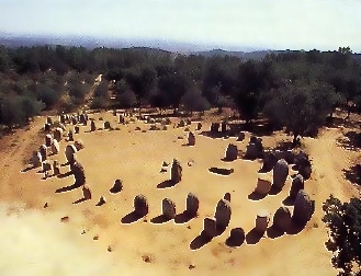 I borrowed this aerial shot courtesy of the Évora tourist website (http://www.evora.net/) so that you can see how the stone circles are laid out, one big donut above a smaller one.