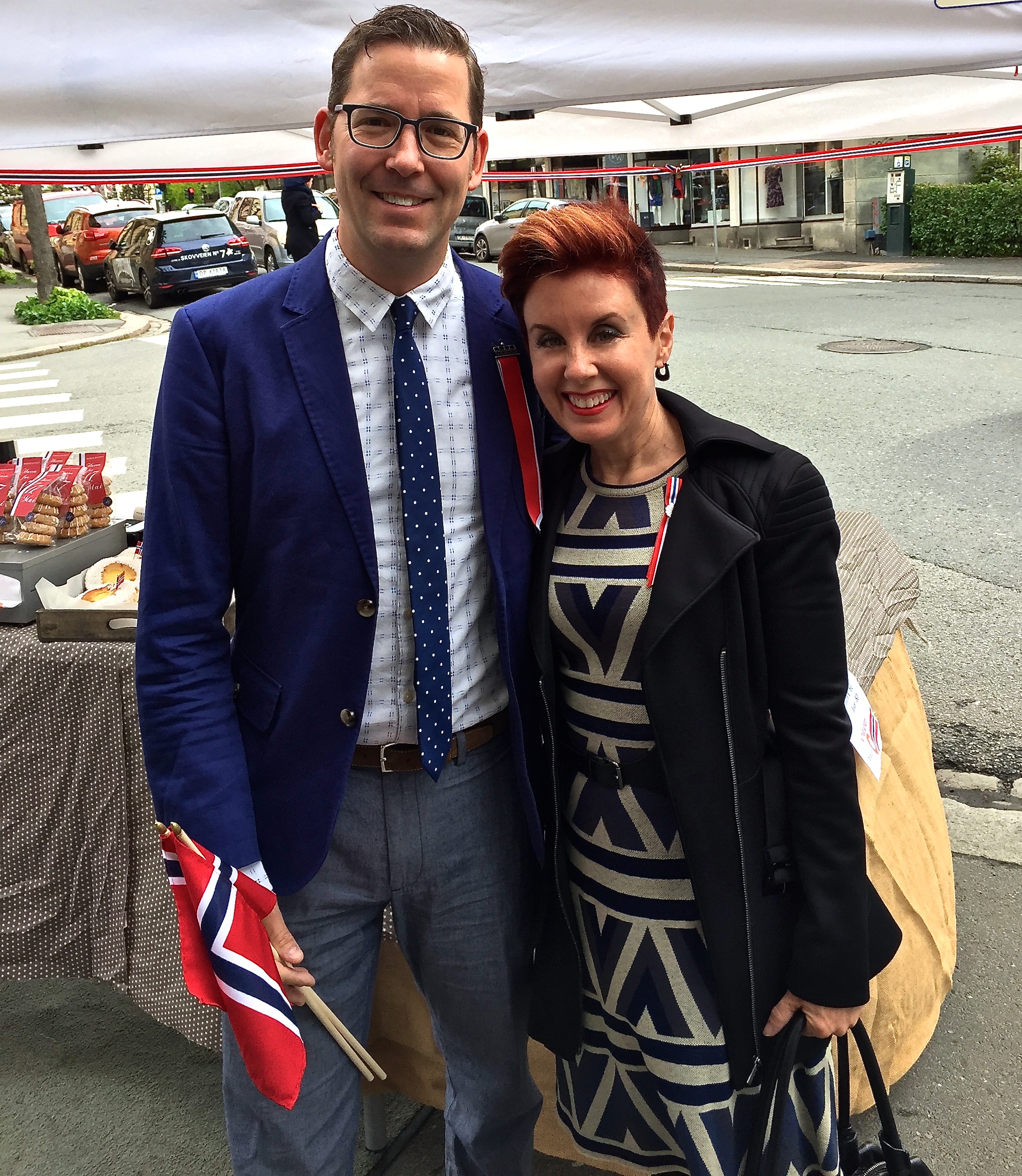 But if you don’t have the desire to spend three month’s pay on a bunad, it’s expected that for National Day you’ll at least put on a suit or dress, along with a lapel pin trailing red, white, and blue ribbons — which is exactly what Matthew and I did.