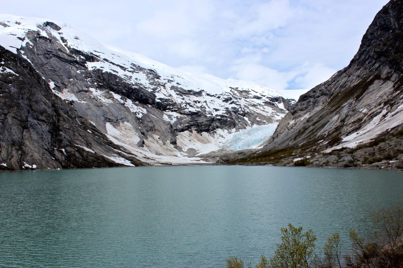 IMG_9732 August 18, 2015 3456 × 2304 Glacier Hiking The Nigård glacial lake, with the tip of the glacier visible in the U-shaped valley between the mountains. (Fast-moving rivers carve V-shaped valleys, while slow-moving glaciers carve U-shaped valleys.)