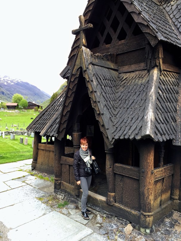 IMG_2200 August 17, 2015 2448 × 3264 Stegastein & Stave Churches The main entrance to the stave church. Note the open ambulatory — an exterior, covered walkway that encircles the entire church.