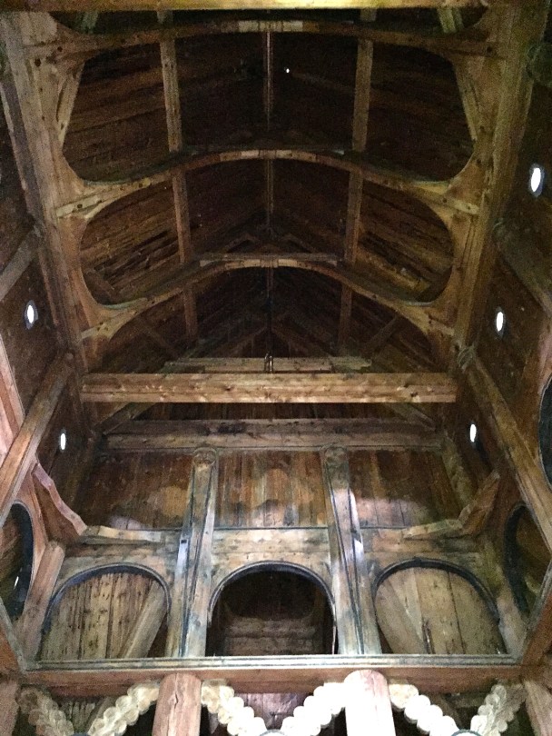 IMG_2202 August 17, 2015 2448 × 3264 Stegastein & Stave Churches Here you can get a good look at the scissor-beamed ceiling, which is built like the overturned hull of a Viking ship.