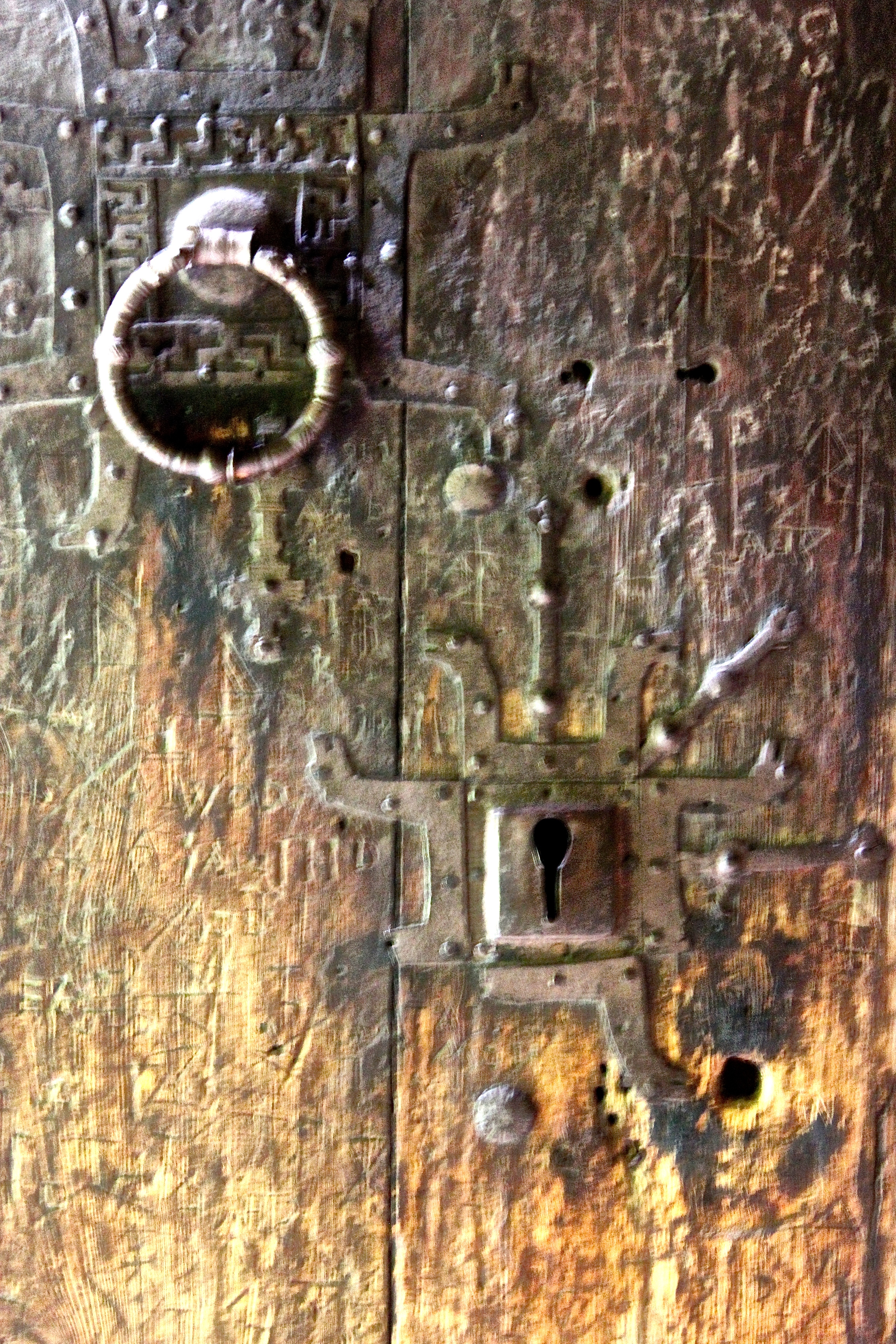 IMG_9629 August 17, 2015 2304 × 3456 Stegastein & Stave Churches Impressive door hardware and centuries-old graffiti.