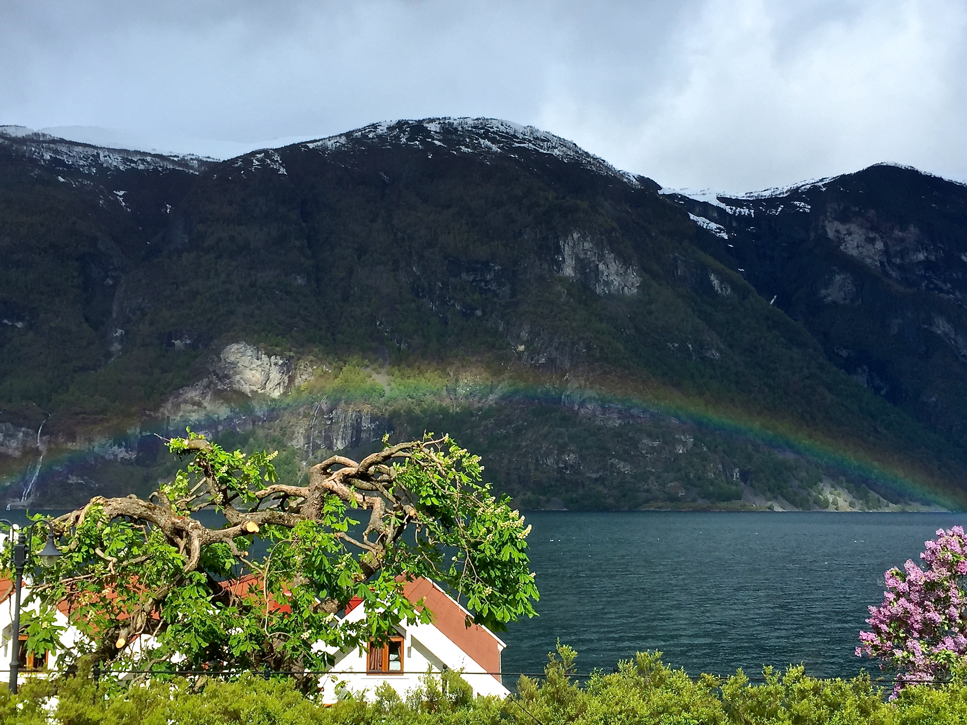 A rainbow over the Aurland fjord.