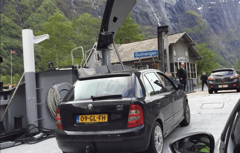 Driving off ferry August 19, 2015 999 × 638 Cruising to Bergen Exiting the ferry, note the ship’s open bow above.