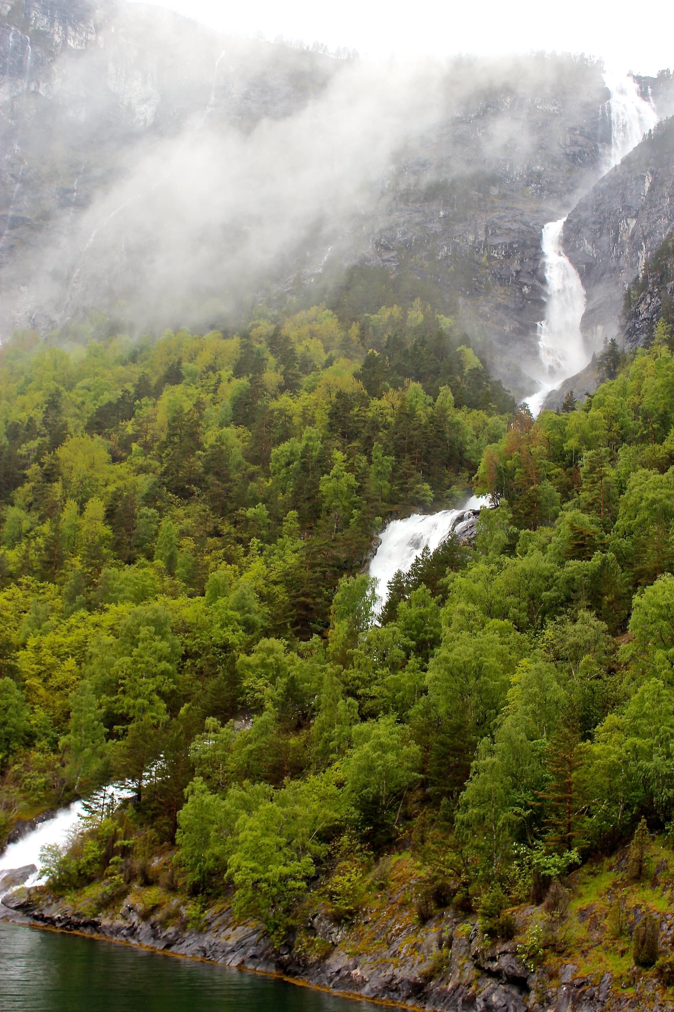 IMG_0008 August 19, 2015 2304 × 3456 Cruising to Bergen Certain fjords receive such an influx of freshwater from waterfalls that they freeze during winter. (Saltwater has a lower freezing point, and fjords in southern Norway rarely freeze due to the more temperate climate.)