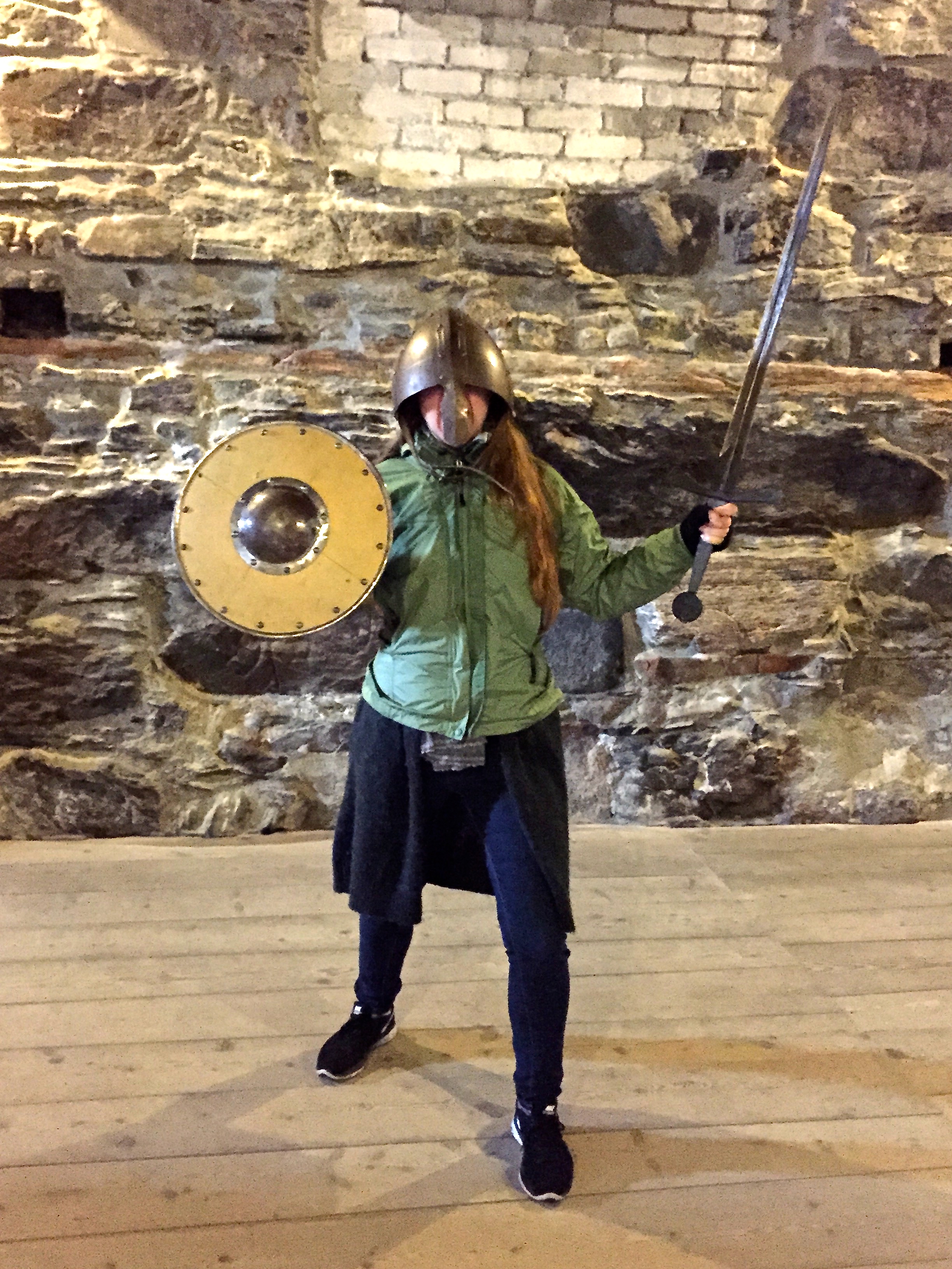IMG_2562 August 19, 2015 2448 × 3264 Cruising to Bergen Ruthie particularly enjoyed the opportunity to don armor in the fortress’s dungeon.