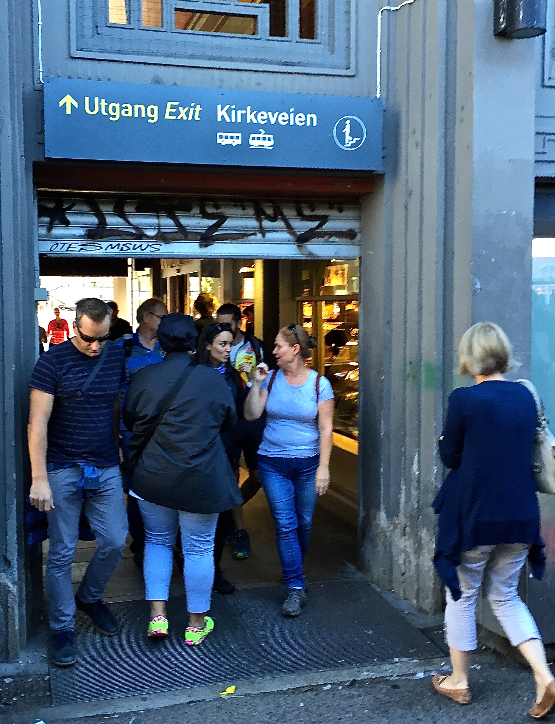 Same thing happened when getting off the Trikk.  As Matthew prepared to exit, a man and his daughter abandoned the exit stairs they were about to head down, ran down the aisle, and shoved their way in front of Matthew to use the same stairs he was using.