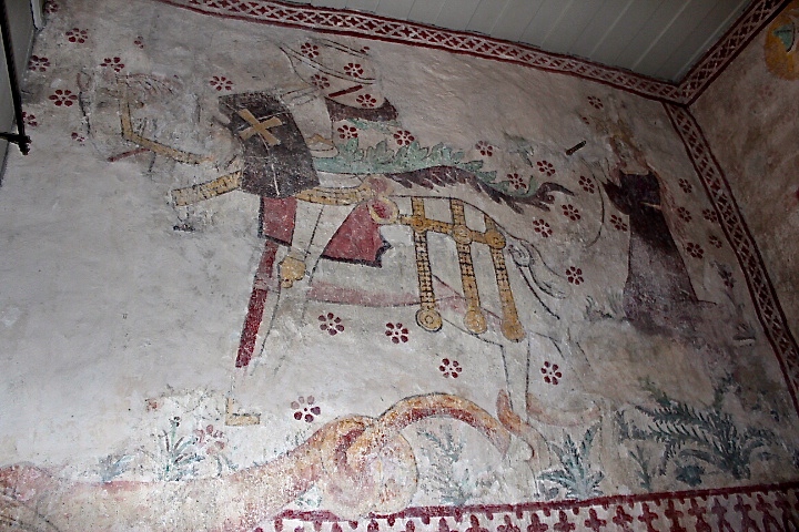 IMG_5409 September 4, 2015 720 × 480 Midsummer’s Day A Medieval painting of St. George slaying the dragon (symbolizing the vanquishing of pagans) as the princess stands by.