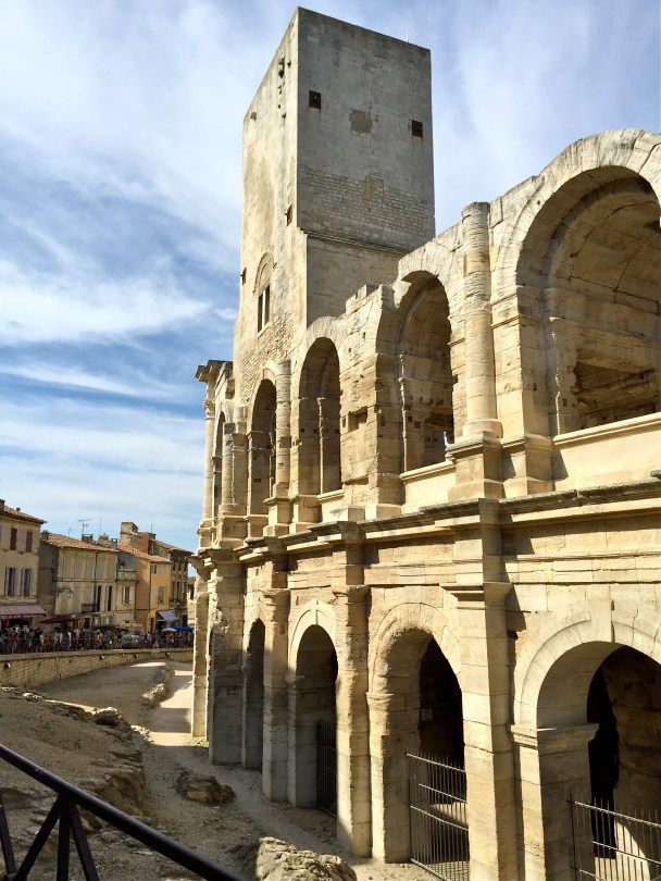 IMG_3187 September 17, 2015 2448 × 3264 Paris and Provence The Roman amphitheater (90 A.D.) is situated in the city center. The tower was added in the 5th century, when the entire arena was turned into a fortress after the fall of the Roman Empire.