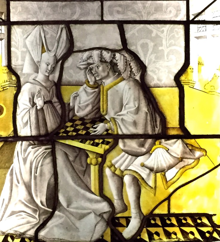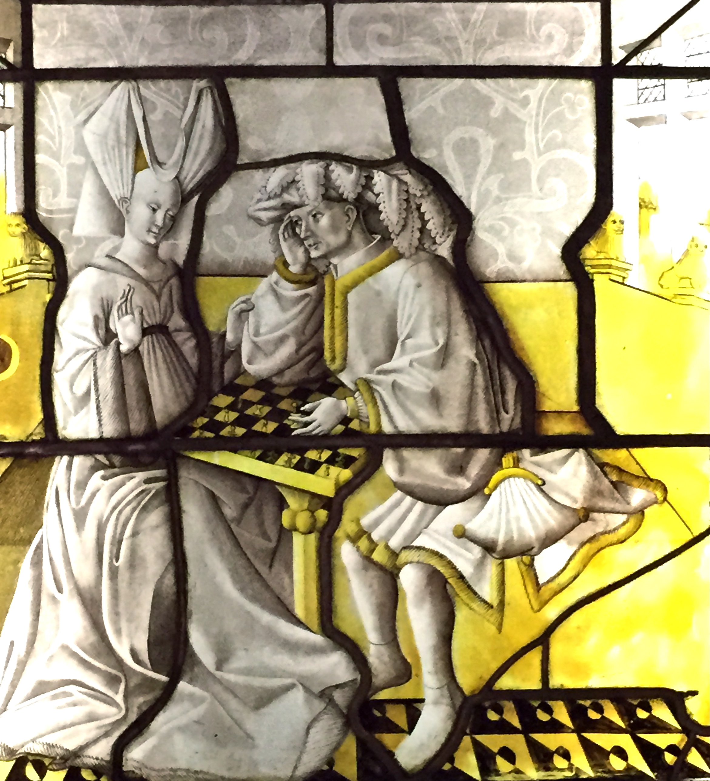 IMG_3808 September 16, 2015 2341 × 2577 Paris and Provence The “chess players” stained glass window is a metaphor for an amorous conquest. Love the headdresses.