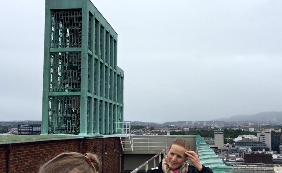Bell tower October 6, 2015 938 × 576 Oslo City Hall The carillon (bell) tower atop City Hall was so loud at close range that we all held our fingers in our ears.