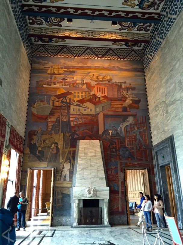 IMG_3972 October 6, 2015 2448 × 3264 Oslo City Hall Revold wanted to show shipping, forestry, and “all that holds our long, long country together.”