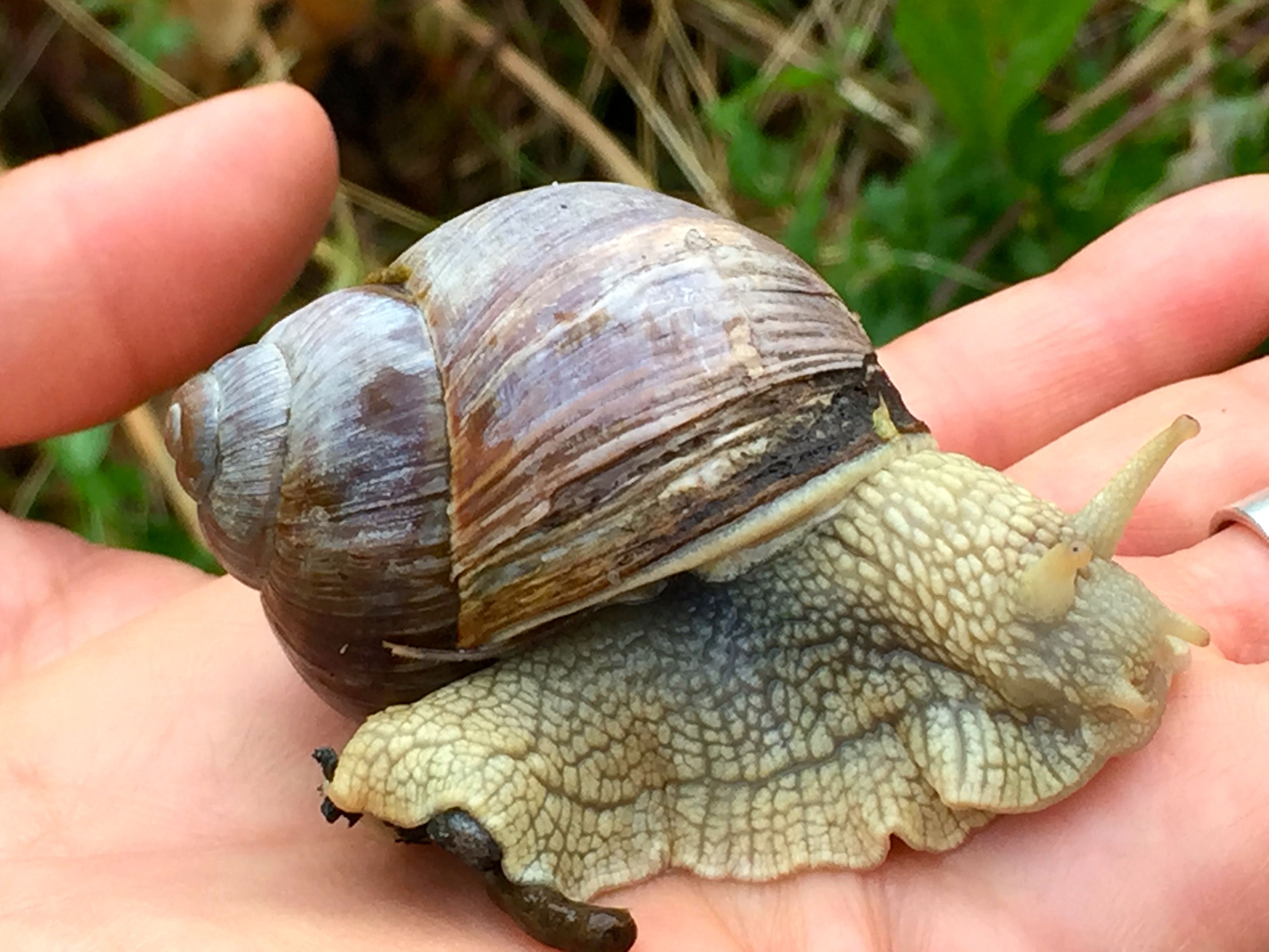 IMG_4085 October 12, 2015 3264 × 2448 Oslo’s Islands I found a beautiful snail gliding its way along the grass. I had to talk Matthew out of making escargot for dinner.