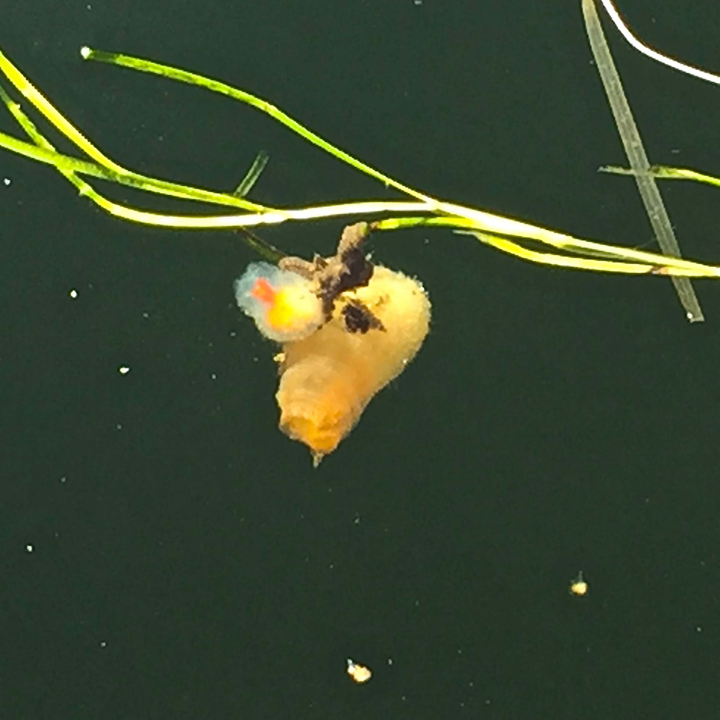 A huge crab combed the pier for some munchies. Sea urchins congregated in a giant clump. And suspended on a piece of drifting seaweed was the strangest and frankly most pornographic sea creature I’d seen in a long time.
