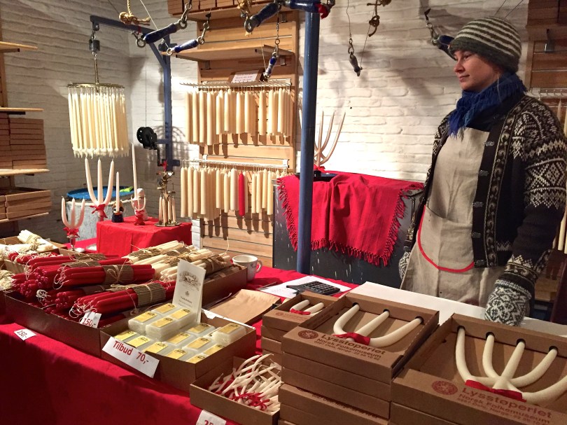 IMG_7206 December 22, 2015 3264 × 2448 Norwegian Folk Museum Christmas Market The candlemaker has been hard at work. The 3- and 5-branched candelabra supposedly symbolize the Trinity, or the number of family members in a home, depending upon who you ask.