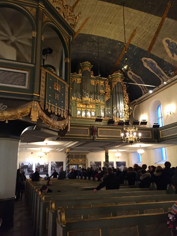 IMG_7314 December 23, 2015 2448 × 3264 Santa Lucia Day Much of the church interior is Baroque. The “sky box” on the left is where the royal family sits during services.