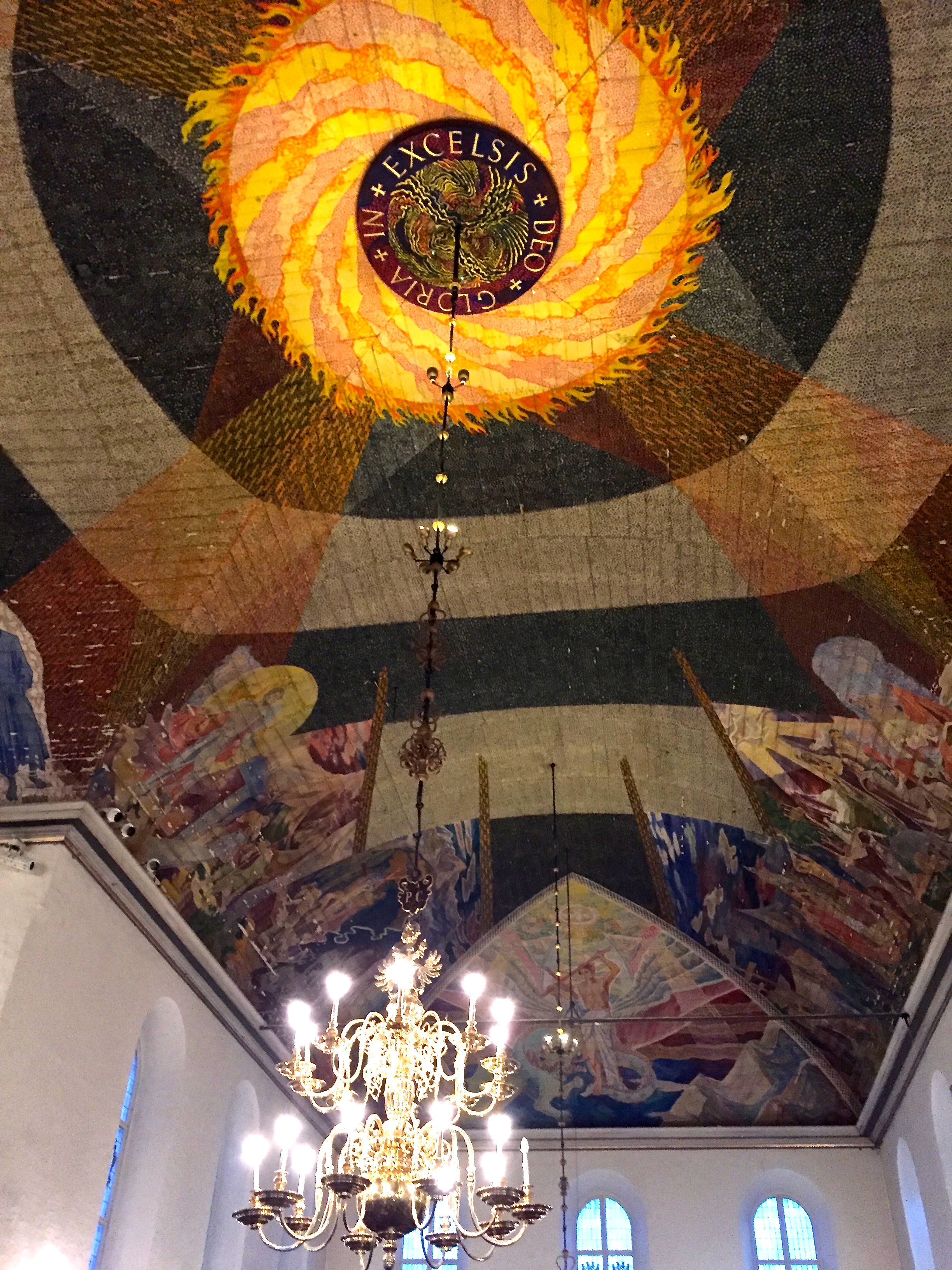 IMG_7315 December 23, 2015 2448 × 3264 Santa Lucia Day The ceiling of the Domkirke is covered in modernist paintings by Hugo Louis Mohr.