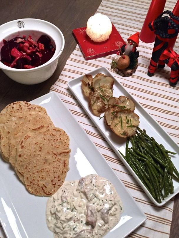 IMG_8307 January 26, 2016 2448 × 3264 A Quiet Christmas Herring, lefse, caraway-drizzled beets and other root veggies, along with beans and cheesy potato skins.