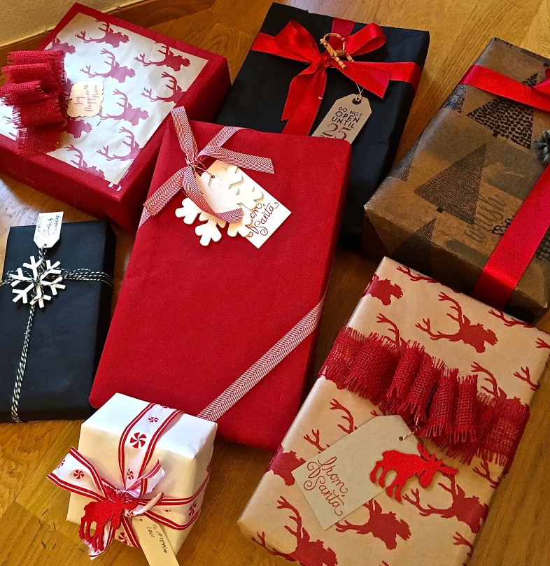 IMG_8278 January 25, 2016 2344 × 2415 Christmas Traditions A few of our color-coordinated Christmas wrappings this year. Yeah, I might need to see a doctor about my obsession.
