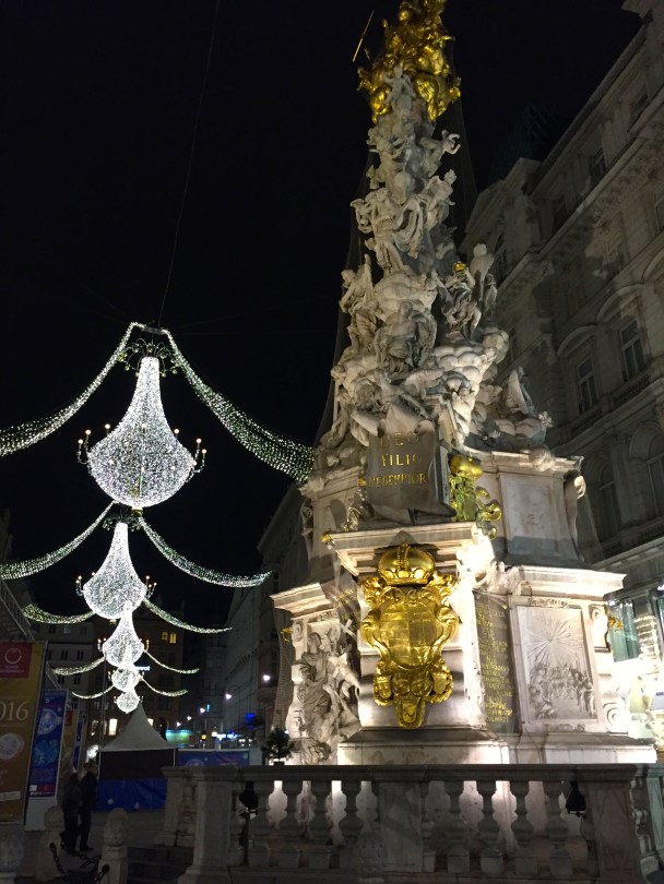 IMG_7800 February 8, 2016 2448 × 3264 Vienna’s Architectural Gems Emperor Leopold I erected the Holy Trinity Plague Column in 1679 to thank God for sparing him from the Black Death. If you look closely, you can see the jutting, genetic Hapsburg jaw.
