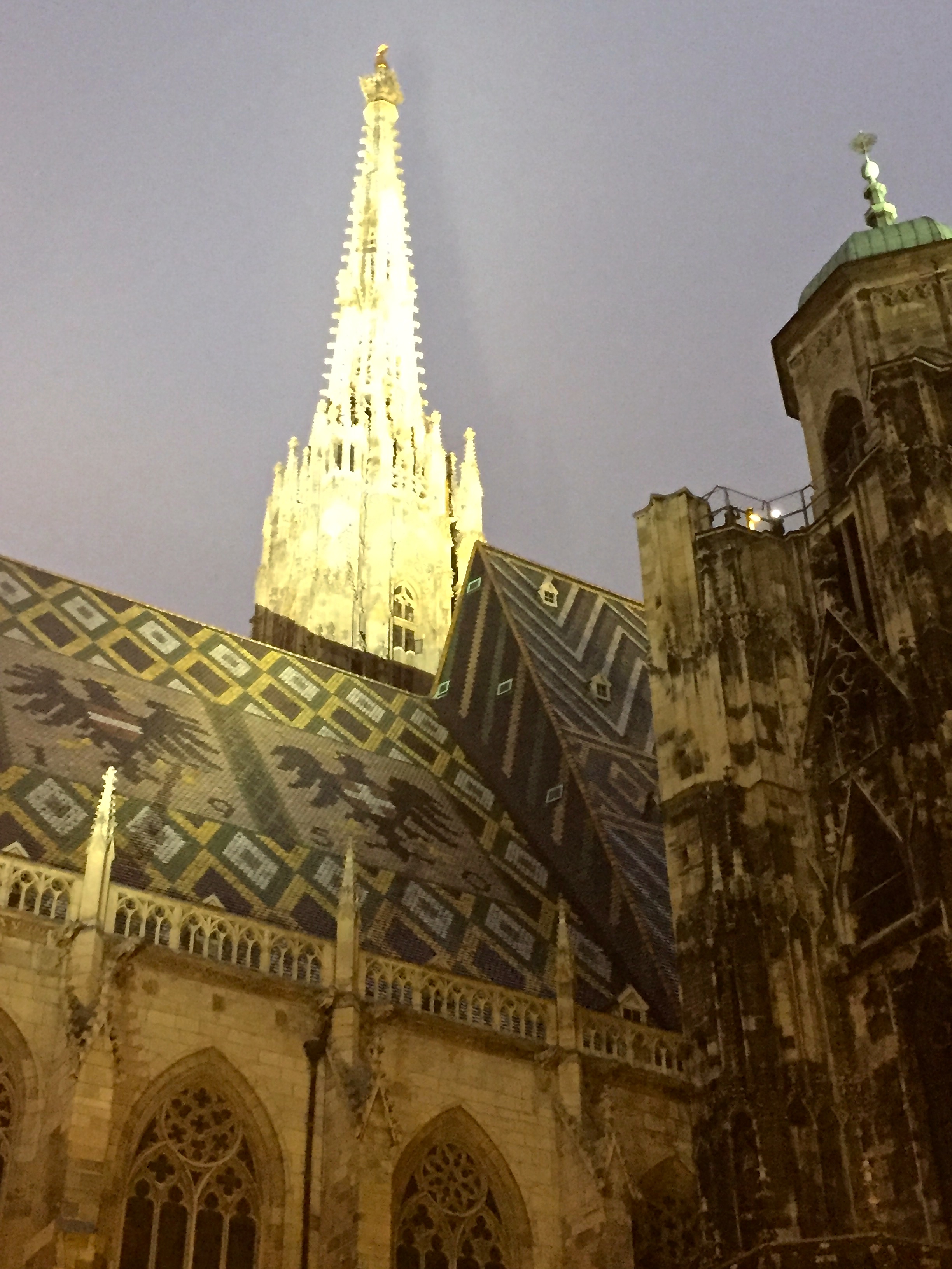On the other side of the roof, two eagles represent the state of Austria on the left and the city of Vienna on the right. The 450-ft-tall pinnacle, affectionately called “Steffl” (Stevie) was the main lookout point for the city. By Hapsburg decree, no other church spire was allowed to be built taller.