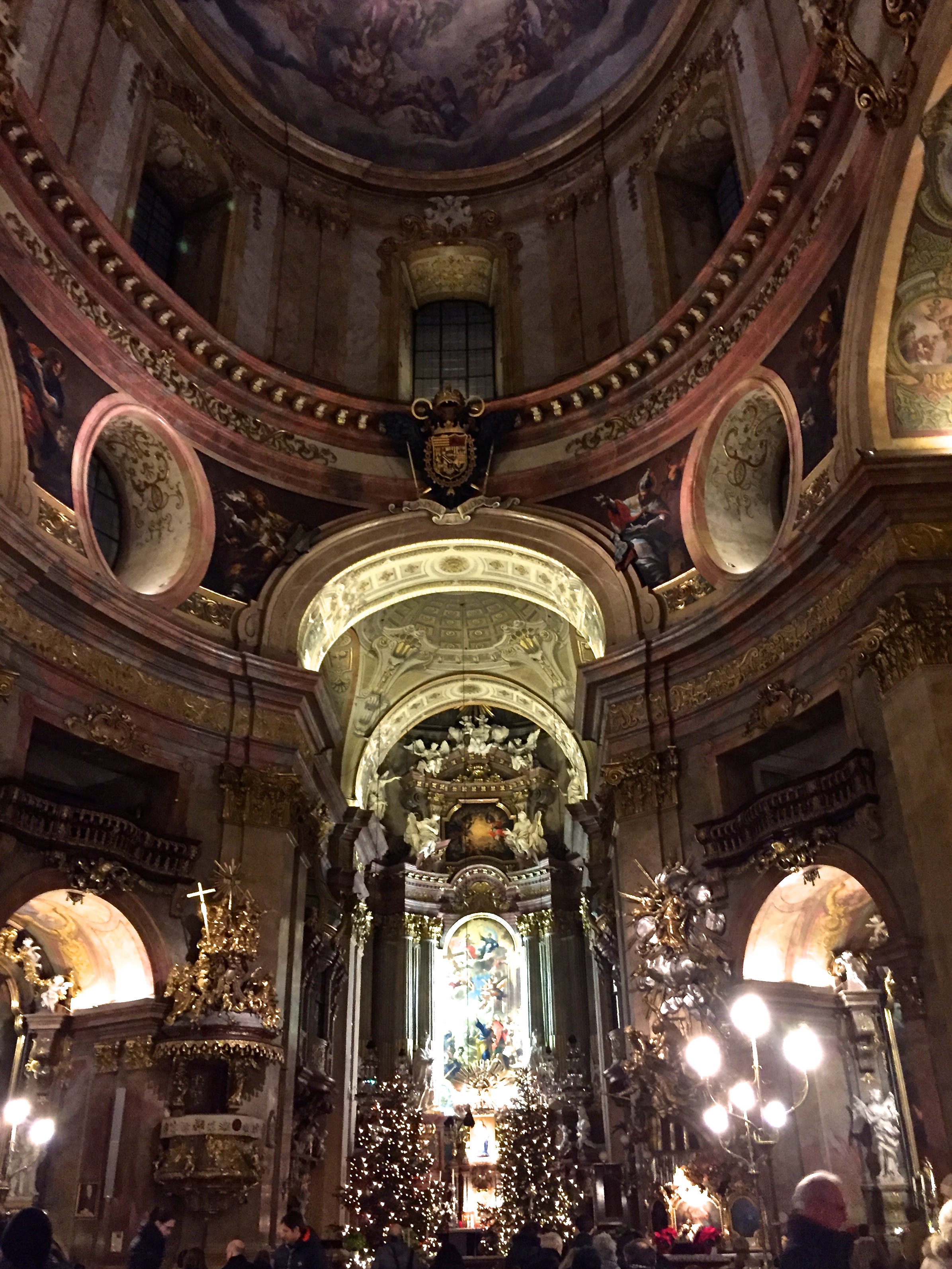 IMG_7919 February 23, 2016 2391 × 3187 Vienna’s Architectural Gems Supposedly Charlemagne established the second church on the site, which burnt down in 1661. Leopold I rebuilt it in 1733 as a “thank you” for having survived the bubonic plague of 1679-80.