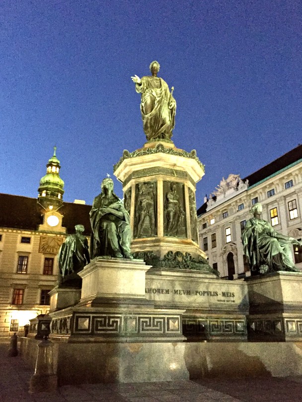 IMG_8028 February 24, 2016 2448 × 3264 Vienna’s Architectural Gems Emperor Franz II (1785-1835) greets visitors to the courtyard of the Hofburg Palace. Behind him is a tower boasting three different kind of clocks, including one that shows the current phase of the moon.