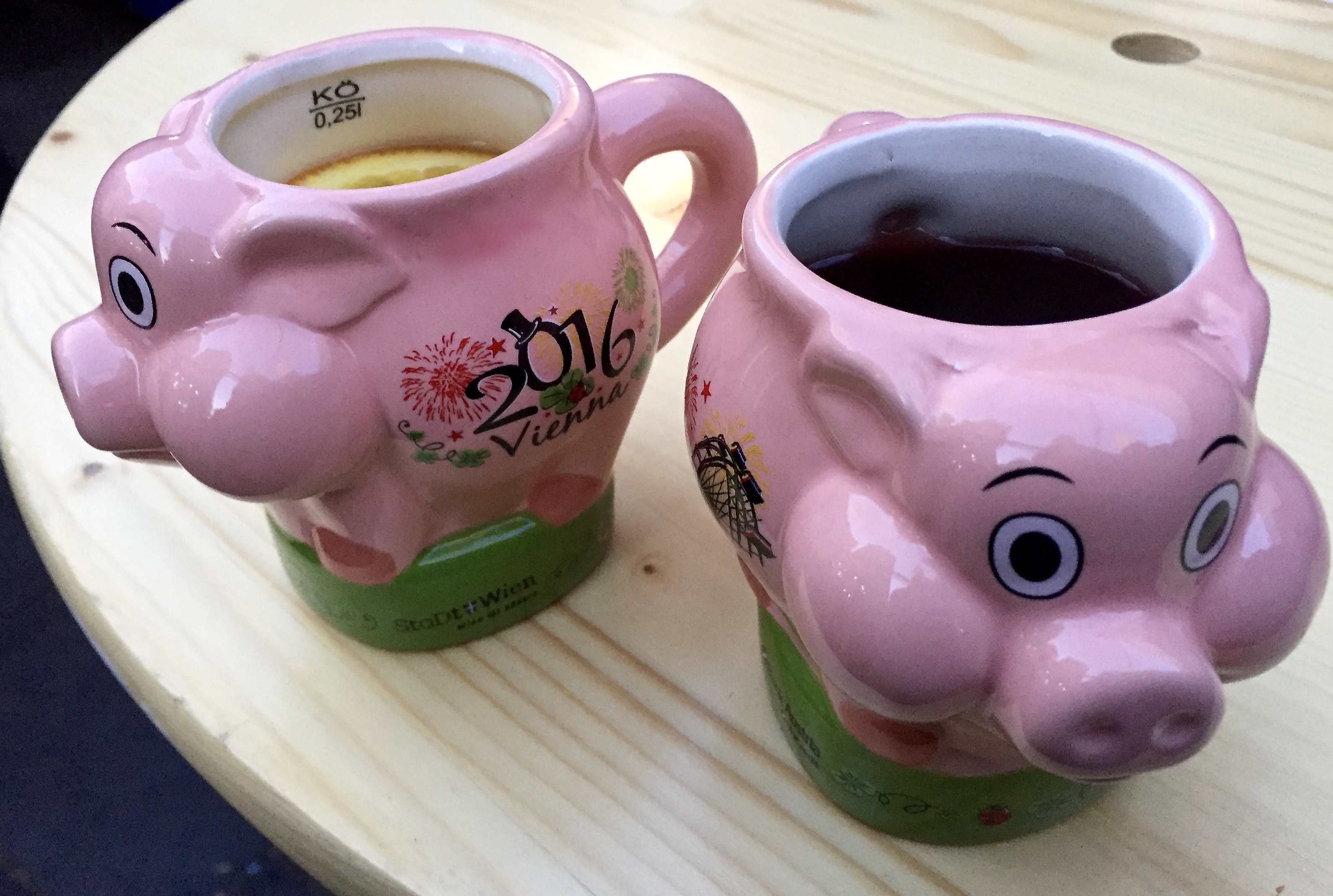 IMG_8133 March 3, 2016 3185 × 2142 Vienna’s Culinary Delights Just like in Germany, the punsch came in adorable little cups, the cutest of which were New Year’s piggies that symbolize good luck.