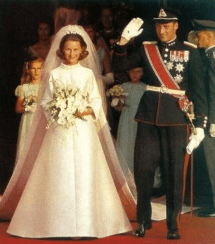 Queen Sonja King Harald wedding March 28, 2016 788 × 894 King Harald’s 25th Anniversary Harald (then Crown Prince), and Sonya’s wedding day. Photo: Royal Order of Sartorial Splendor.