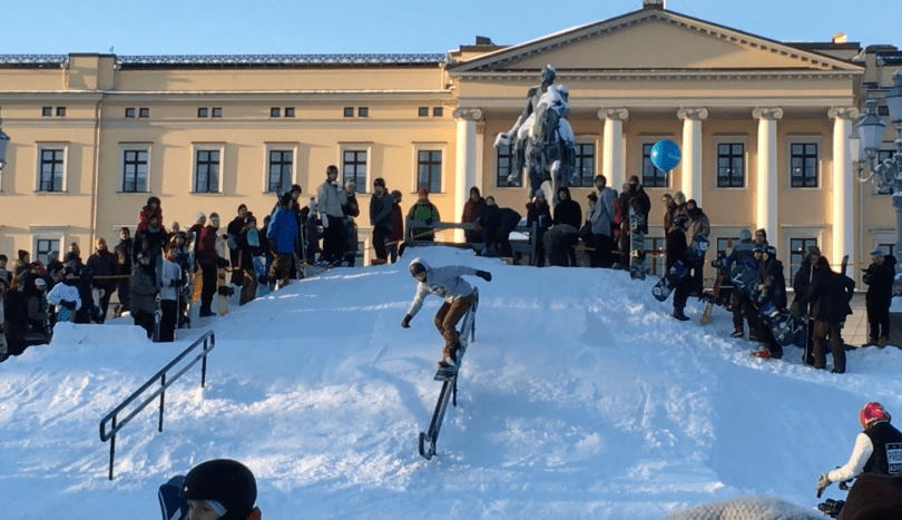 Ski boarder March 28, 2016 2316 × 1338 King Harald’s 25th Anniversary Check out this guy boarding down the handrail.