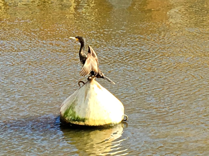 Tons of waterbirds make their homes in the canal and along its marshy banks. Here, a cormorant stretches its wings in what is sometimes called the “cormorant crucifix pose.” Scientists think this posture helps the bird air-dry its wings after diving deep to catch food.