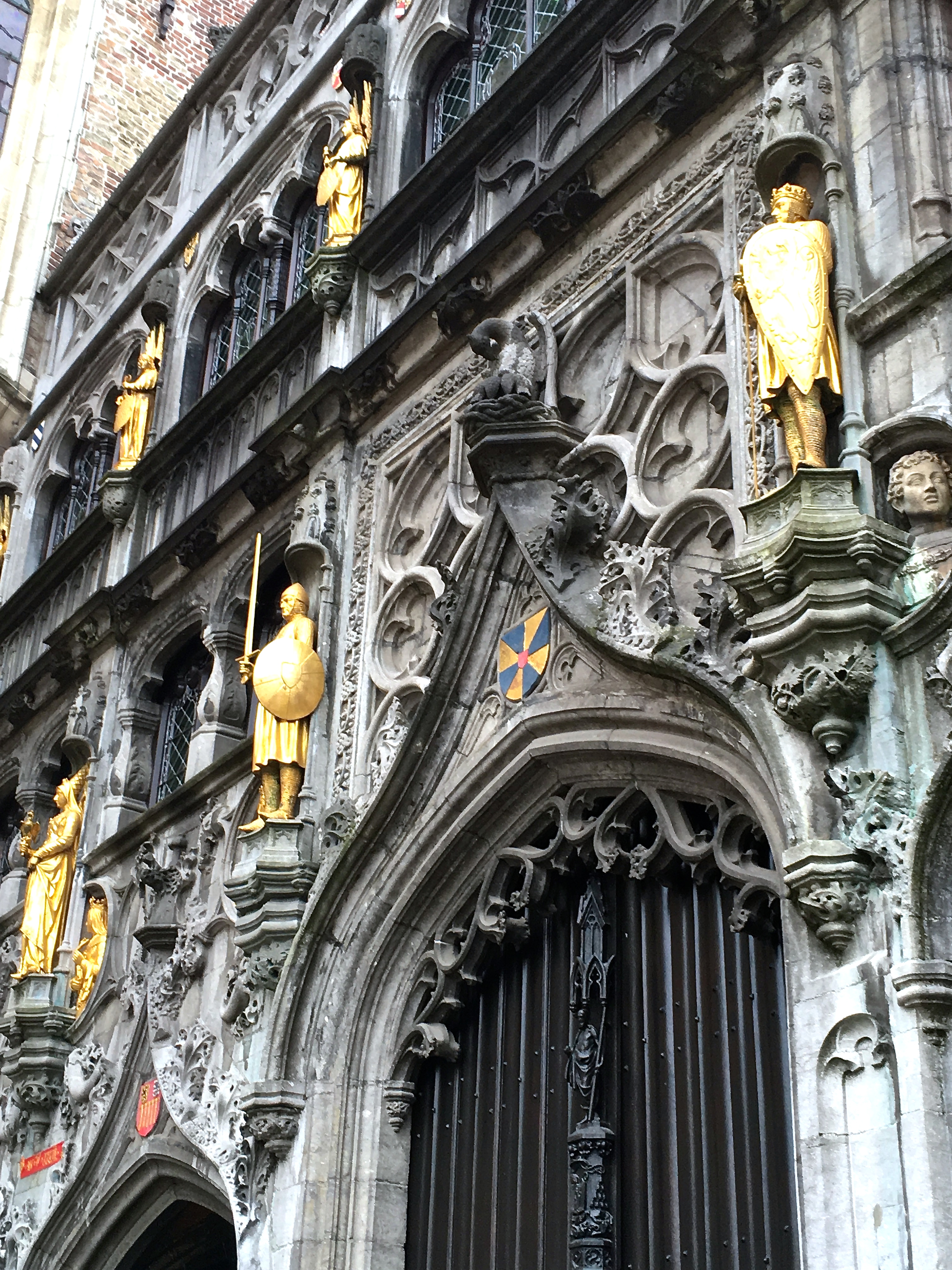 IMG_9094 April 7, 2016 3024 × 4032 Belgium: “In Bruges” The Basilica of the Holy Blood’s exterior is peppered with knights and ladies, which is fitting for a church established by a brave crusader (1150.)
