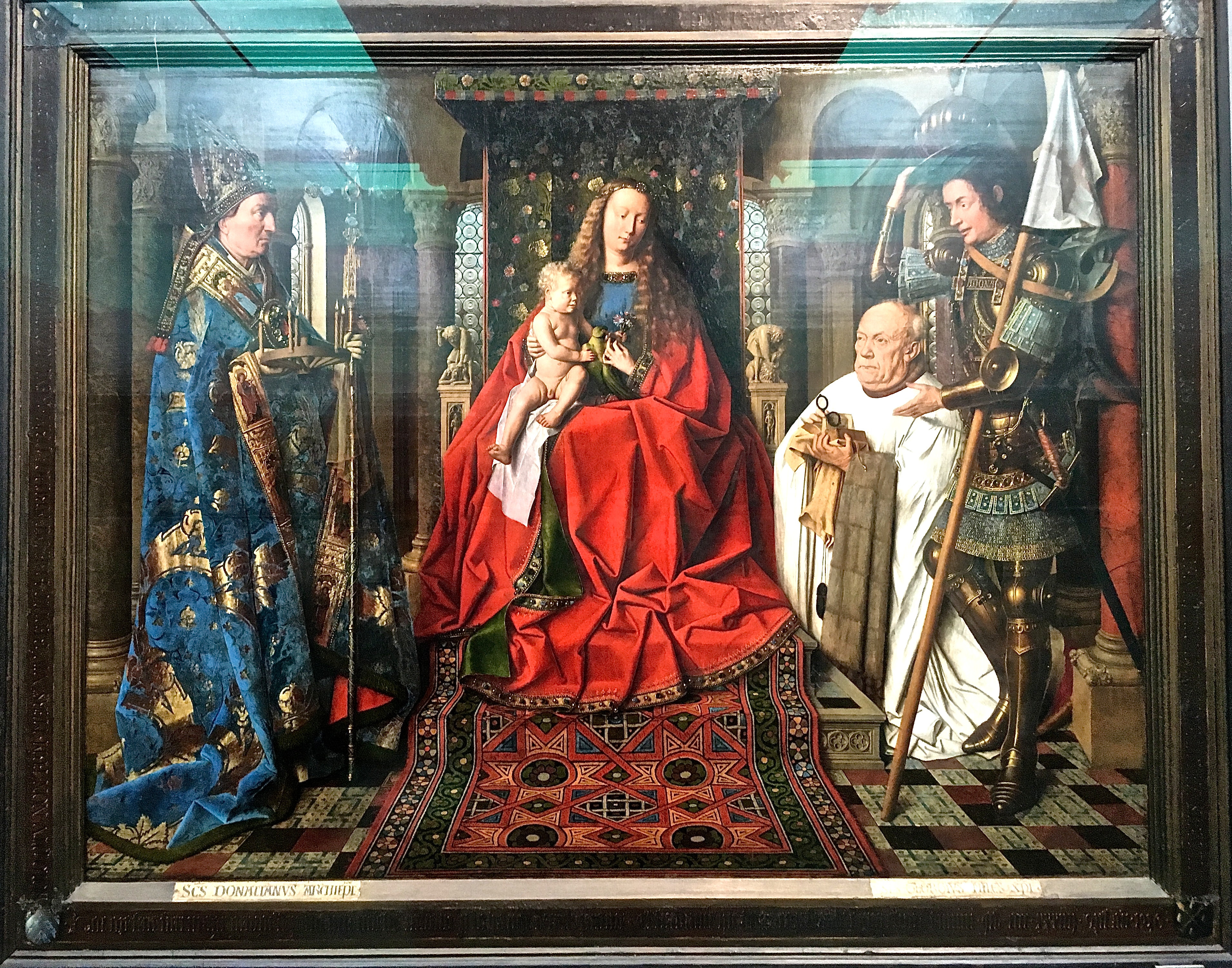 Jan van Eyck — often called the world’s first and greatest oil painter — is classified as a “Flemish Primitives” artist. The term simply means that the Flemish (who were the most refined artists in the 1400s) hadn’t yet perfectly mastered 3-D perspective. This painting, entitled “Mother and Child with Canon Joris van der Paele,” is van Eyck’s masterpiece, painted in 1439.