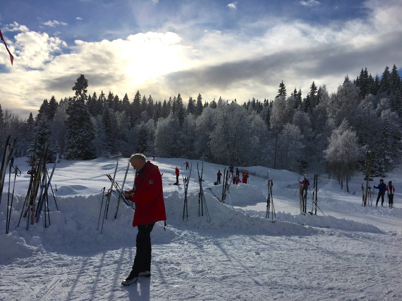 IMG_9755 April 28, 2016 4032 × 3024 Skiing to Ullevålseter Others simply plant their skis in the snow. No one seemed worried about theft. But for me the biggest problem was remembering where I put my skis, and picking them out of the crowd.
