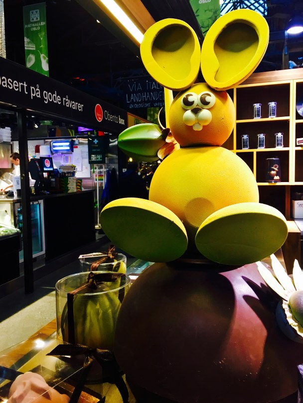IMG_2259 May 26, 2016 3024 × 4032 Easter in Oslo The Easter Bunny is a recent import to Norway. I bought a smaller version of this guy, whose belly was filled with chocolates.