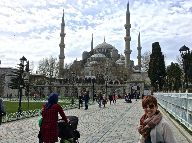 The Blue Mosque’s actual name is the Sultan Ahmet Mosque, in honor of its benefactor. To design it, Sultan Ahmet hired famous Ottoman architect Mehmet Aga — the same guy who built the Kaaba, the holiest shrine in Islam at the center of Mecca’s mosque. In this photo, we could only squeeze in four of the six minarets. The mosque also has five main domes and eight secondary domes. With its color scheme and “pointy towers,” it looks a bit like an arabic version of Disneyland’s castle.