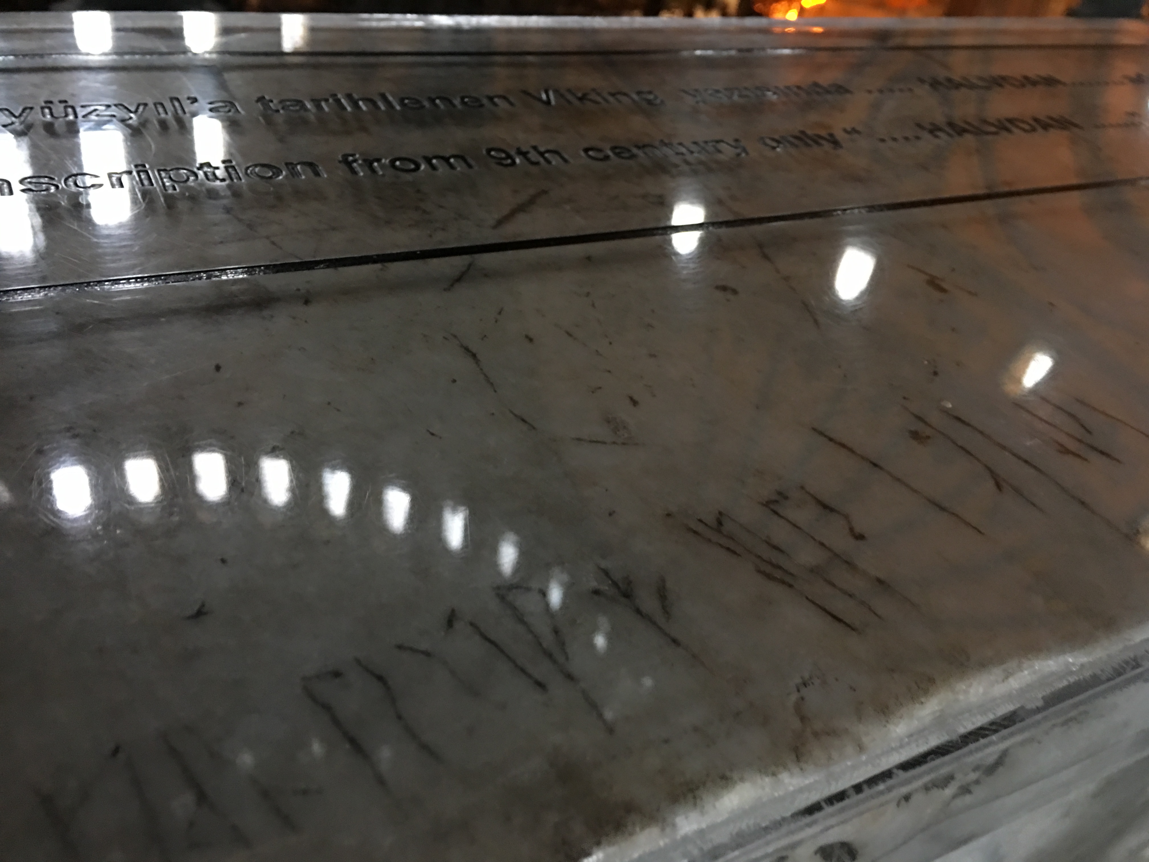 The gallery railing that looks down into the central nave of Hagia Sophia contains runic inscriptions carved by a Norse member of the Byzantine Emperor’s Varangian Guards during the Viking Age (8th – 11th Century). Scholars think its says the equivalent of “Halfdan (meaning ‘half Danish’) was here.” I knew we’d find the pagan Vikings in here somewhere! Seems like everywhere I go, there’s a Scandinavian connection.