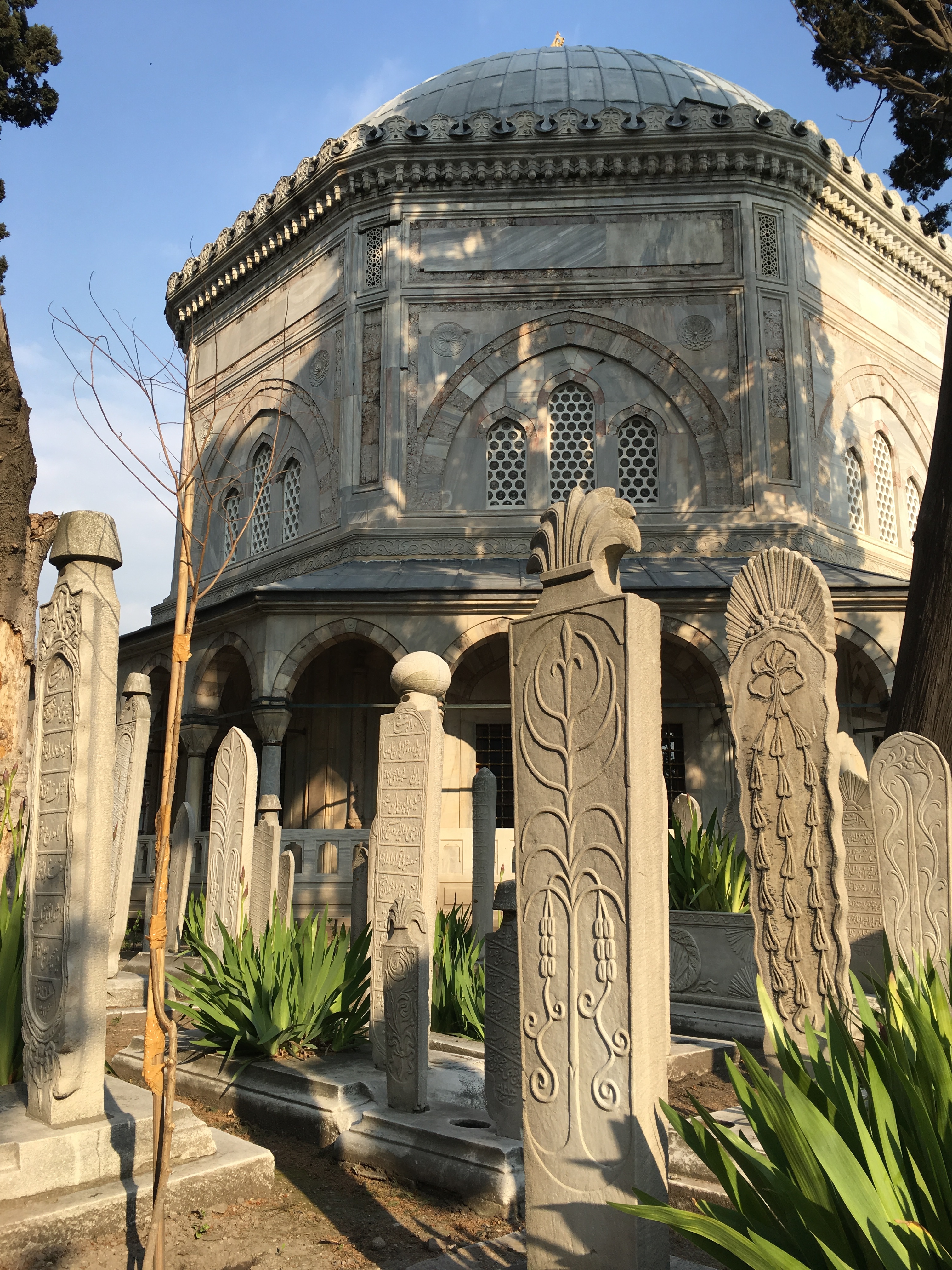 A cemetery surrounds the back yards of the two mausoleums. Each grave has two markers: one holds an inscription while the other is decorative. (In Israel, I was told that the two tombstones confused evil spirits, since they can only enter through the feet — in other words, which is the headstone and which is the footstone? Demons can’t tell.)