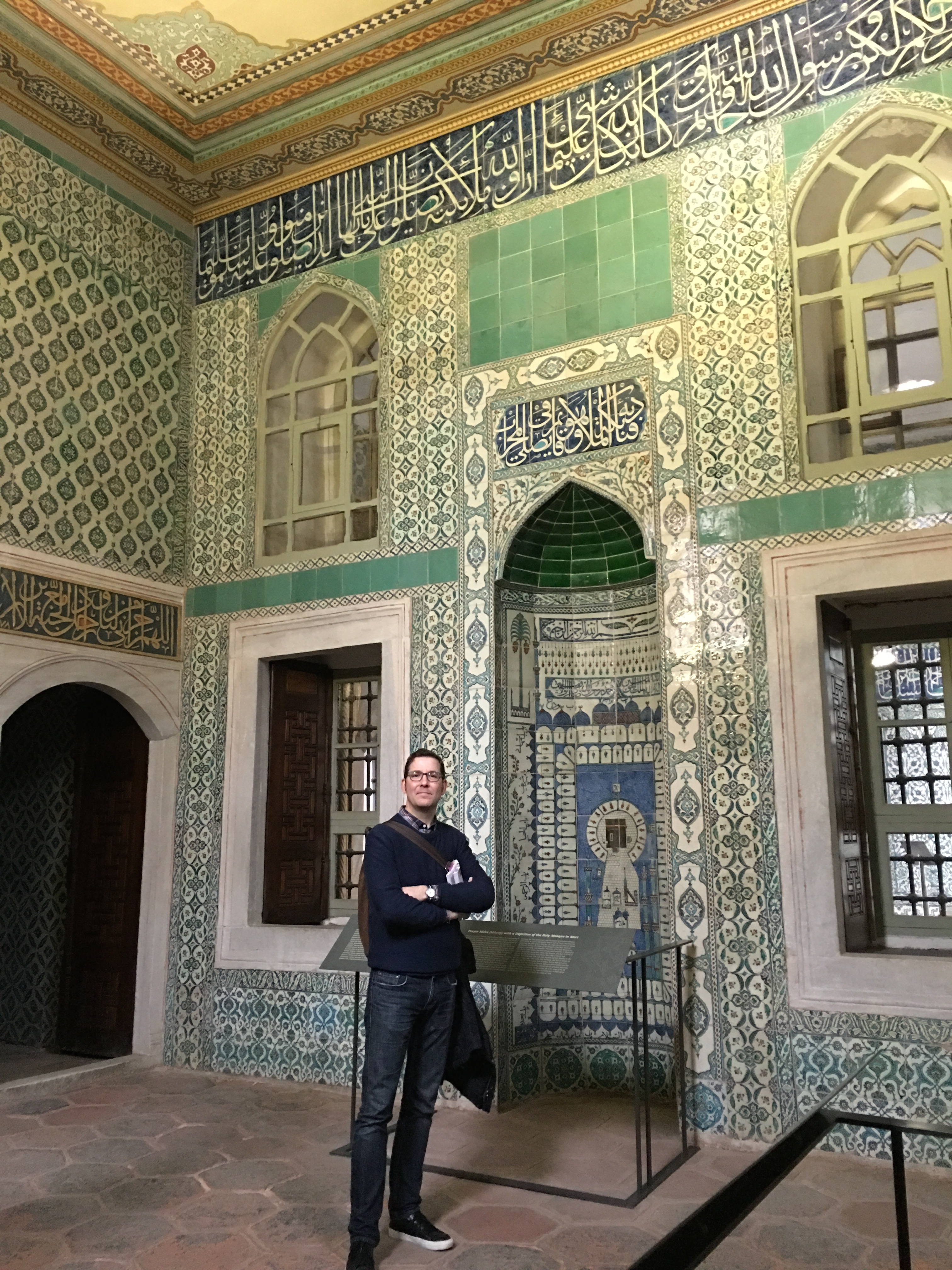 IMG_1434 June 28, 2016 3024 × 4032 Turkey: Mosques & Museums Look closely at the prayer niche; it has a detailed floor plan of the mosque complex at Mecca, all done in glazed ceramic tiles.