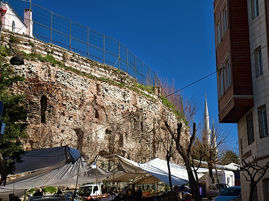Also still standing is the curved end of the Hippodrome, called the Sphenodone. It’s basically a support structure made up of 25 vaulted chambers and a corridor that led to the stone bleachers. Great building material, these bleachers were disassembled over the years and used to contruct other things like the Blue Mosque’s courtyard, which sits where the Emperor’s royal viewing platform (called the “Kathisma”) once stood.