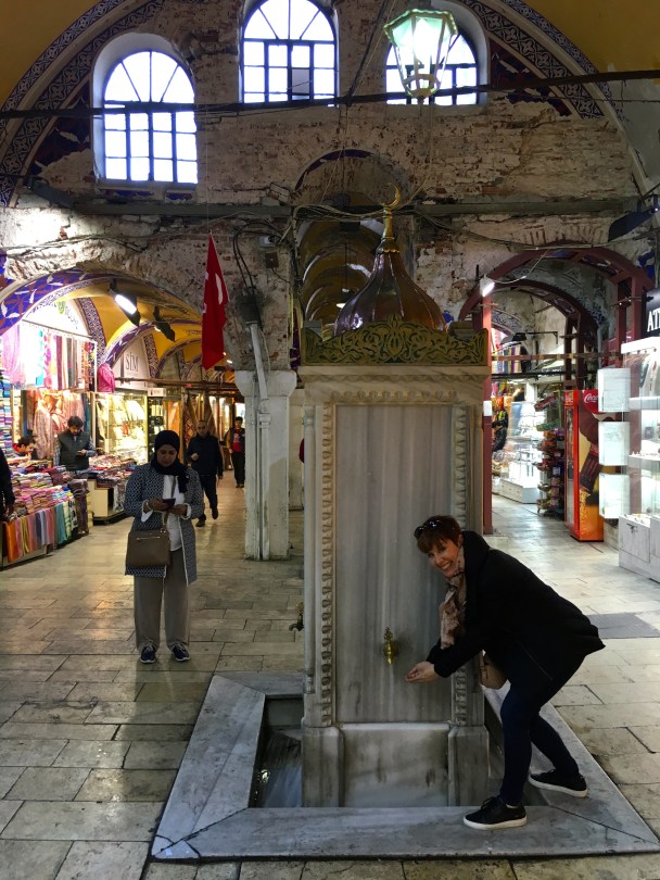 IMG_0161 June 30, 2016 3024 × 4032 Turkey: The Grand Bazaar If you get a little thirsty during your shopping trip (and don’t mind wee bit ‘o dysentery), you can always take a swig of water from this ancient fountain.