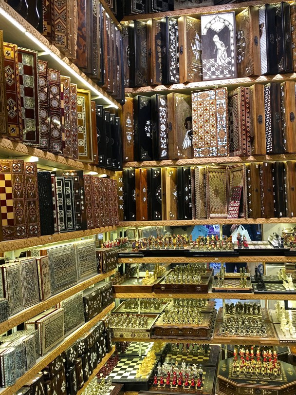 IMG_1249_2 June 30, 2016 3024 × 4032 Turkey: The Grand Bazaar Need an inlaid backgammon, chess, or checkers board? Look no farther than the Grand Bazaar.