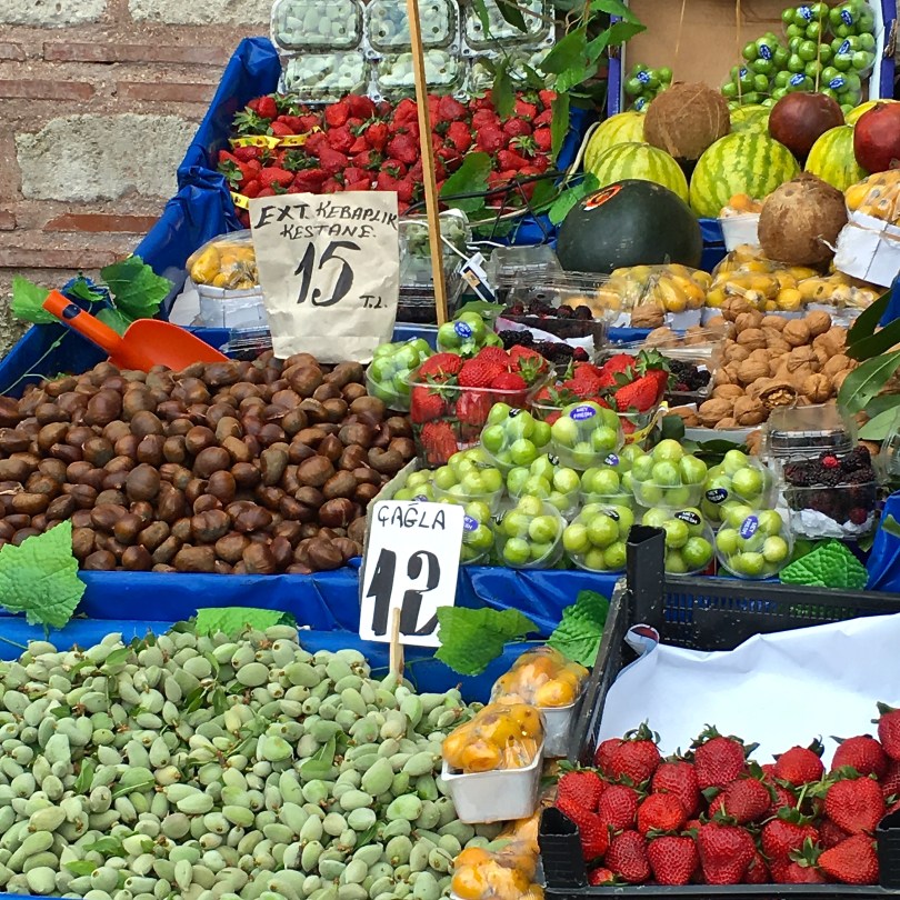 IMG_2141 June 30, 2016 3024 × 3024 Turkey: The Grand Bazaar Fresh fruits and nuts — I have no idea what some of these are, but they look intriguing, don’t they?