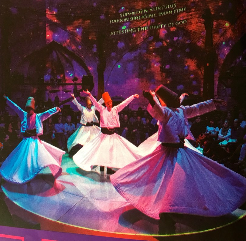 Note the rather psychedelic background projected onto the walls, along with a verse from the Qu’ran. At first, I found it distracting, but later, I was thankful for it as something to concentrate on rather than the dizzying dance. (Both Matthew and I felt motion sick by the end of the performance.)